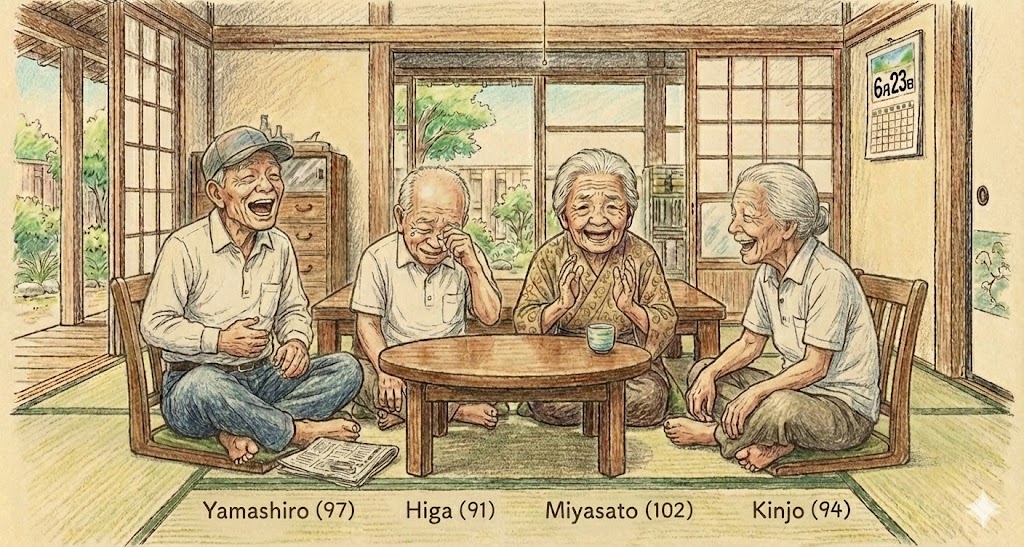 A Dialogue between Yamashiro (97), Higa (91), Miyazato (102), Kinjo (94)