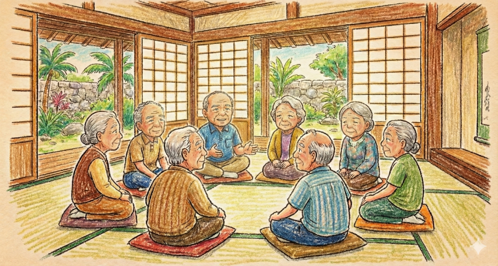 初年度は、沖縄県内7か所で会を開き、73名の方々が参加してくださいました。平均年齢は77.7歳。月に1回、セミクローズド形式で集まりました。途中から参加したい方がいらっしゃる場合は、すべてのメンバーの同意を得ました。